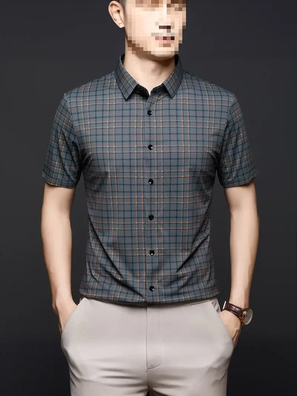 Say goodbye to uncomfortable summer days. The Ashton Striped Shortsleeve Shirt is crafted from breathable ice silk satin, keeping you cool and refreshed even during the hottest months.