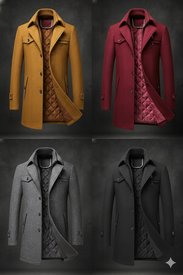 The Vermont Premium Trench Coat is crafted from natural wool and lined with quilted satin, offering warm, understated elegance for cold-weather days. Its clean silhouette and refined details make it a timeless piece designed for effortless everyday sophistication.